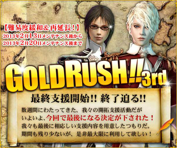 先週のイベントをさらに再調整する形で継続の「ゴールドラッシュ 3rd Rush!」イベント。装いを変えつつも、以下の方に有効なイベントとなっている。