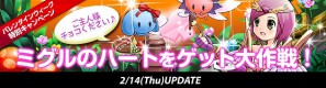 アエリアは、「グランドファンタジア」において、本日2月14日より、「ミグルのハートをゲット大作戦」や「バレンタイン記念キャンペーン」などを開始する。