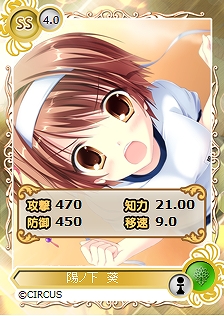 今回登場するキャラカードは同作品内に登場するメインヒロイン5名、特に目玉は、今回新しく追加された「陽ノ下葵(SS)」で今回の「召喚くじCIRCUS」でしか手に入りません。