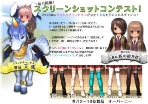 また、スクリーンショットコンテスト2回を1ラウンドとし、1位の作品同士で得票数を競います。得票数が多かった作品を応募した方がラウンドチャンピオンに決定!ラウンドチャンピオンにはECOゲーム内アイテム「騎乗ペット・天馬」をプレゼントいたします。
