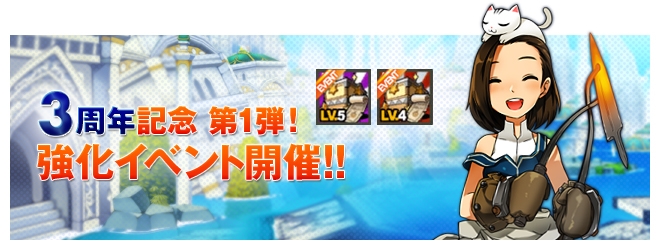 NHN Japanは、「エルソード」において、3月6日より、3周年記念イベント第1弾「強化イベント」、「ひな祭りイベント」第2弾を開催、エルコインショップに「強化パッケージ」が登場する。