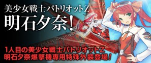 「美少女戦士パトリオットZ」は、愛する国を守るために立ち上がりし5人の美少女戦士で構成された新部隊です!今回は、そのパトリオットZからマイペースだけど、いざという時には頼れるリーダー「明石 夕奈」が爆撃機専用特殊外装になって登場しました!装備時には「攻撃力+5%」の効果を得ることができます!