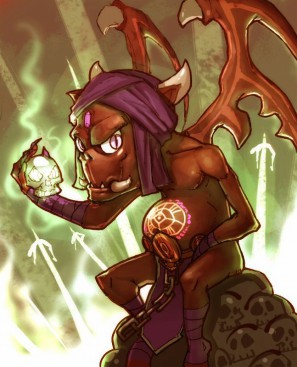 闇の種族「カルドン」を支配する四天王のひとり。体躯は小柄で力に乏しいが、悪魔の如き明晰さと残酷さを兼ね備え、仲間であっても悪童を警戒している者は少なくない。