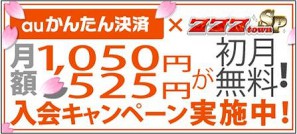 3月8日(金)~3月22日(金)に、525円、1050円コースにauかんたん決済で有料登録すると3月度の基本料金が無料になります。