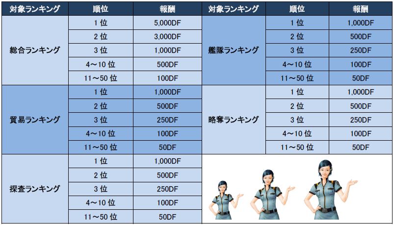 シーズン終了時の各種ランキングの順位に応じて称号やDF を獲得することができます。称号は獲得条件を満たすことですべてを獲得でき、同じ称号を獲得することによって5段階まで効果がアップします。