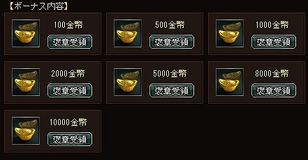 キャンペーン期間中、決済方法を問わず「金幣」をチャージして頂いた方に、累計のチャージ金額に応じて「戦功」や「龍玉」等のボーナス報酬が手に入る「謝恩礼袋」をプレゼントいたします。