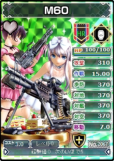 「M4A1カービン」や「M60」といった映画でもおなじみの米軍現用銃火器が、擬人化美少女となったユニットカードが登場します。