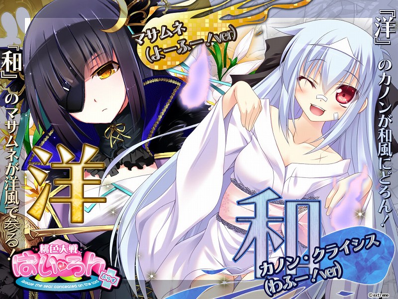 エクストリームは、「桃色大戦ぱいろん」において、本日4月2日より、新たな限定版カード「マサムネ(よーふー!ver)」と「カノン・クライシス(わふー!ver)」を実装する。