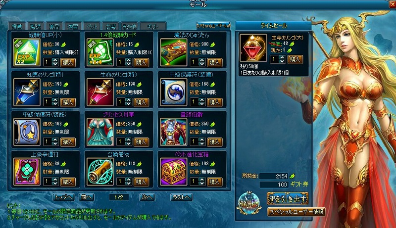 ※「スペシャルモール」で購入したアイテムは帰属済みとなりますので、ご注意ください。