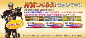 カプコンは、「モンスターハンター フロンティア オンライン」において、「狩友つくろう!キャンペーン」および、「MHF-G解禁記念リスタートキャンペーン」などを実施する。