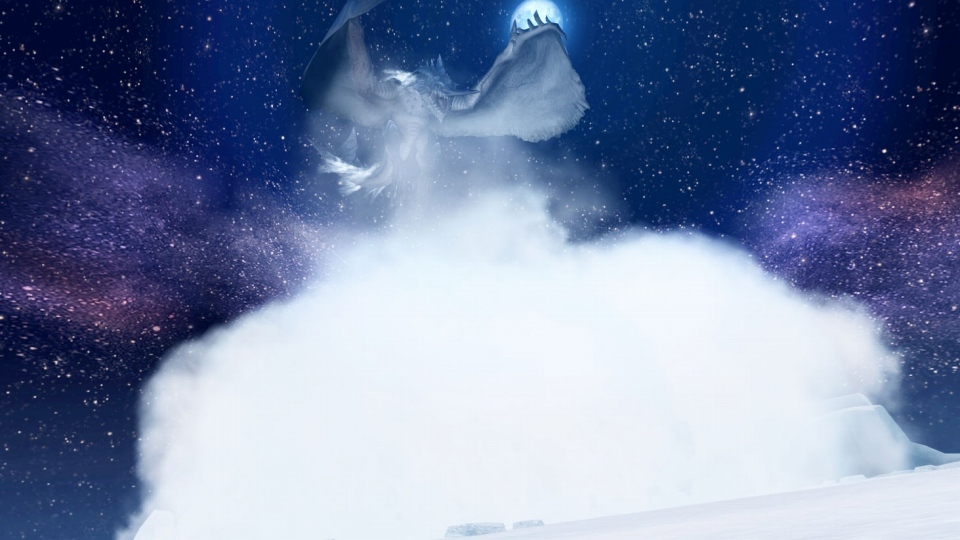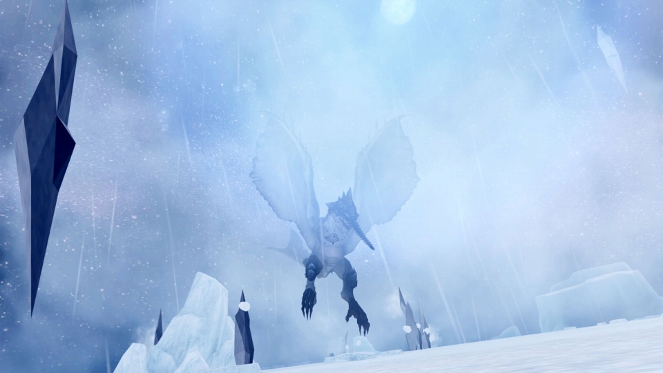 極海に君臨する、青き飛竜。長くのびた鼻は、獲物を串刺しにするほどの鋭さをもち、ギザギザとした鋸状の甲殻は、氷雪の中を削り進み、高速で移動することができる。