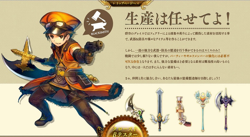 なお、気になるオープンβテストのスケジュールについてですが、2013年4月16日(火)に公式サイトの公開と同時に発表させて頂く予定です。皆様に一日でも早くお楽しみ頂けるよう、スタッフ全員が一丸となって作業中です!もちろん、ゲーム内の調整だけではなく、お得なキャンペーンやイベント等も多数ご用意しておりますので、「碧空のグレイス」から目が離せません。