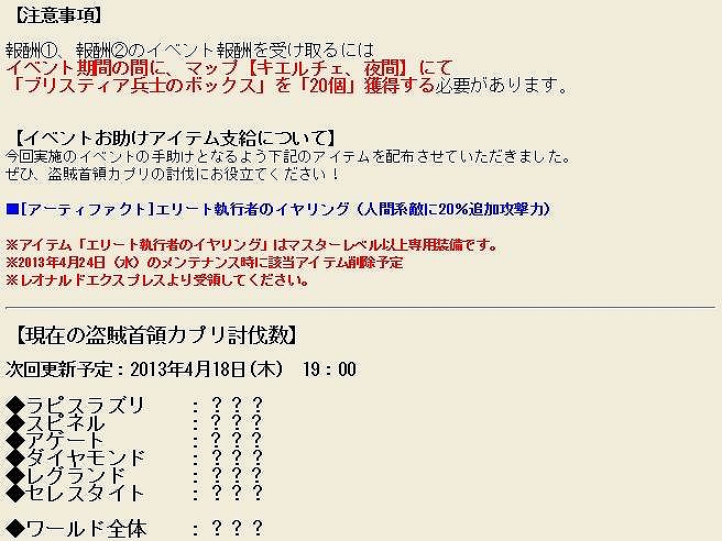 初の全ワールド協力型イベントで、カプリ討伐数に応じて、達成報酬が違ってくる。