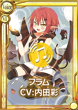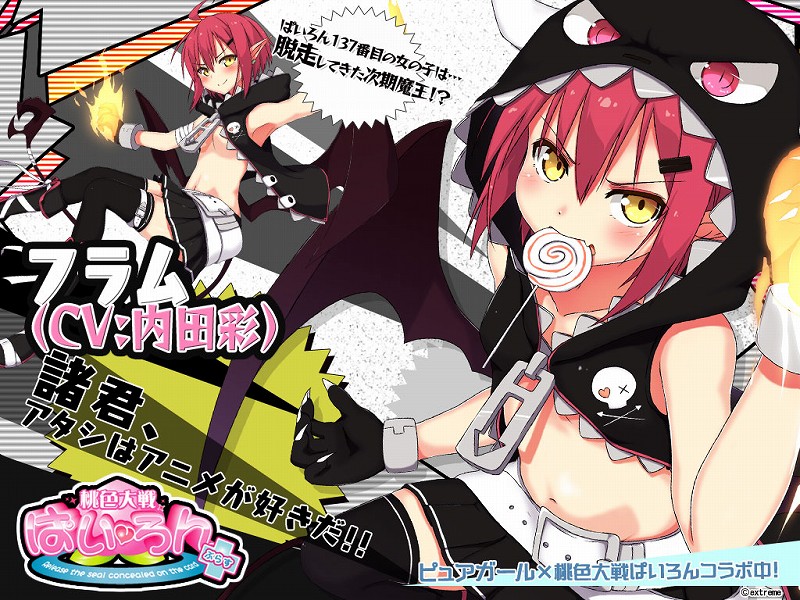 フラムを演じたのはぱいろん初登場、内田彩さんです!悪魔っ娘フラムを活き活きと演じて下さいました。限定ボイスカード「フラム(人間界ver)」では「これってもしかして、あの…!?」なパロディセリフが聴けちゃうかもしれません!こちらもあわせてお楽しみください。
