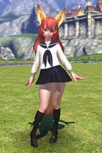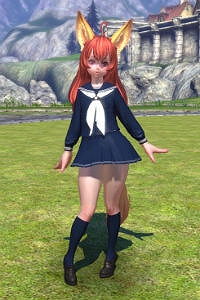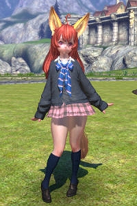 ハイエルフ/キャスタニック/ヒューマンの女性キャラクターには、白いセーラー服にベーシックな紺色のスカートとチェックのスカートの2種類、ページュとグレーのカーディガンタイプ2種類をご用意いたしました。