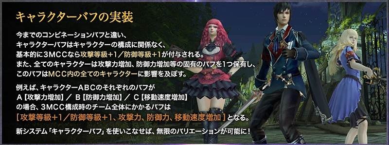 固定メンバーの「コンビバフ」から、どんな組み合わせでも発動の「キャラクターバフ」へ