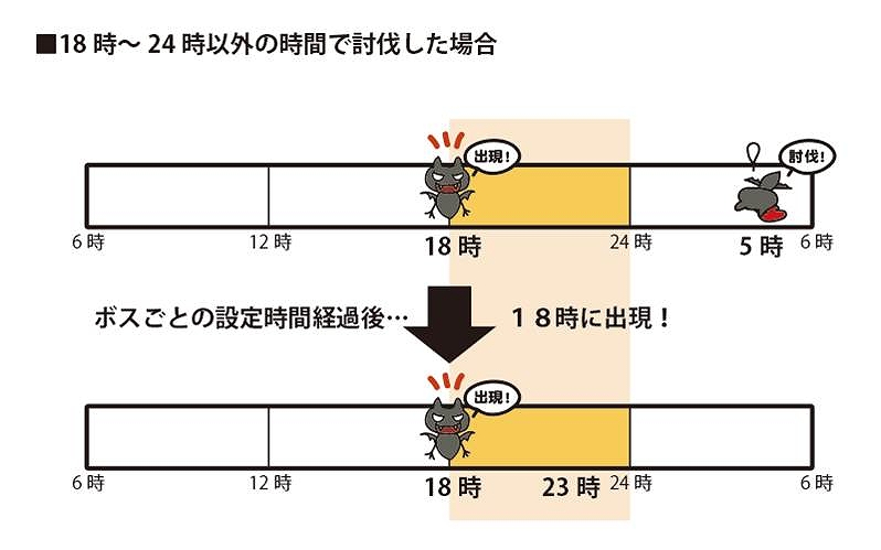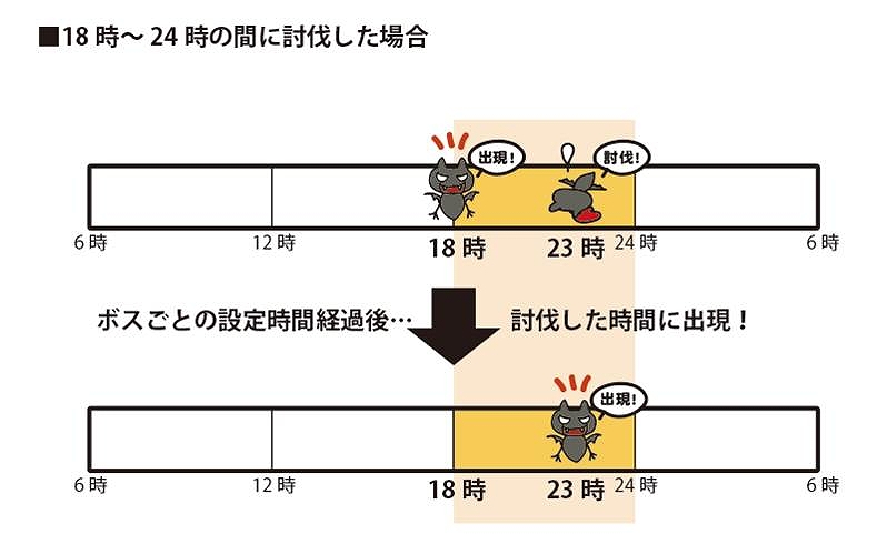 ボスモンスターの再出現時間は、18:00~24:00に設定