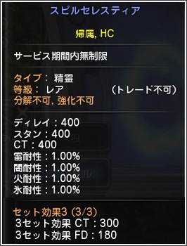 メインウェポンとサブウェポンの2セット効果に加え、精霊「スピルセレスティア」との強力な3セット効果も追加されました。