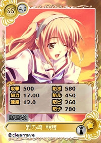 中でも注目なのは野乃崎明穂です。本カードはコスト4.0のレアSSで、攻撃力500を誇る強力なキャラとなっております。