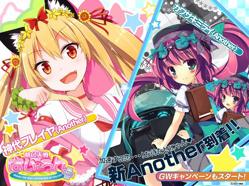 エクストリームは、「桃色大戦ぱいろん」において、本日4月26日より、「カワサキミライ」と「神代フレイヤ」のAnotherカードを実装する。