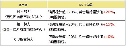 なお、「勢力祝福BUFF」は所属する勢力の規模によって内容が変化するので、仲間と共に最大勢力を目指し、最高のBUFFを手に入れましょう!