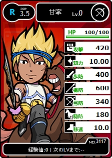 Rの武将カードでは初!「飛将」を持って登場!3.5コストなので、強力な攻撃力上昇効果をより活かせるぞ!