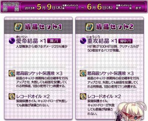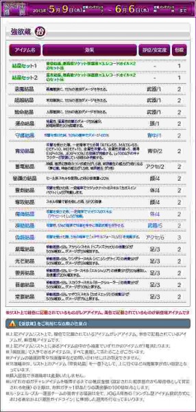 2013年5月9日(木)メンテナンスにて、様々な結晶が当たるお楽しみ箱「強欲蔵【治】」を入荷いたしました。「強欲蔵【治】」では、過去に大当たりとして登場した結晶を厳選し、豪華なラインナップにてお届けいたします。