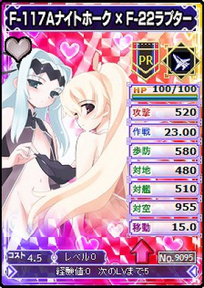 「二人で仲良し!」カードは、5月10日から5月16日の期間限定で、ユニットダスゴールドとユニットダスライトから排出され、世界最強のステルス戦闘機「F-117A ナイトホーク」と「F-22 ラプター」がペアとなったPR(パーフェクトレア)カードが登場いたします。さらに「二人で仲良し!」以外にも、大量のカードがユニットダスゴールドとユニットダスライトに追加されております。