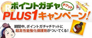 イベント期間中、一度に3000円以上リオコインを購入することで獲得可能な「ポイントガチャチケット」に「超高性能強化保護剤」がもれなくついてきます!