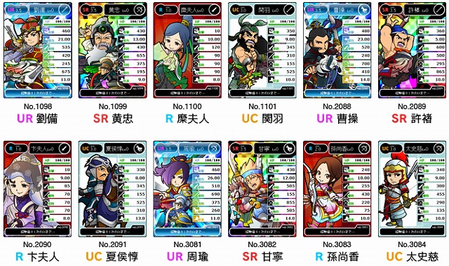 追加されるブショーダスSP(魏・呉・蜀)限定カードは以下の通りです。