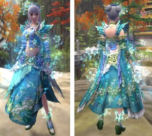 大喬は「二喬」と称されるほどの可愛らしい名将です。適度な露出を加えて軽やかな印象に。肩の装飾や花の舞うエフェクトは、キャラクターの動作を美しく見せます。ソックス風の足元も可愛らしいポイントとなっています。