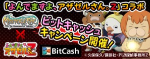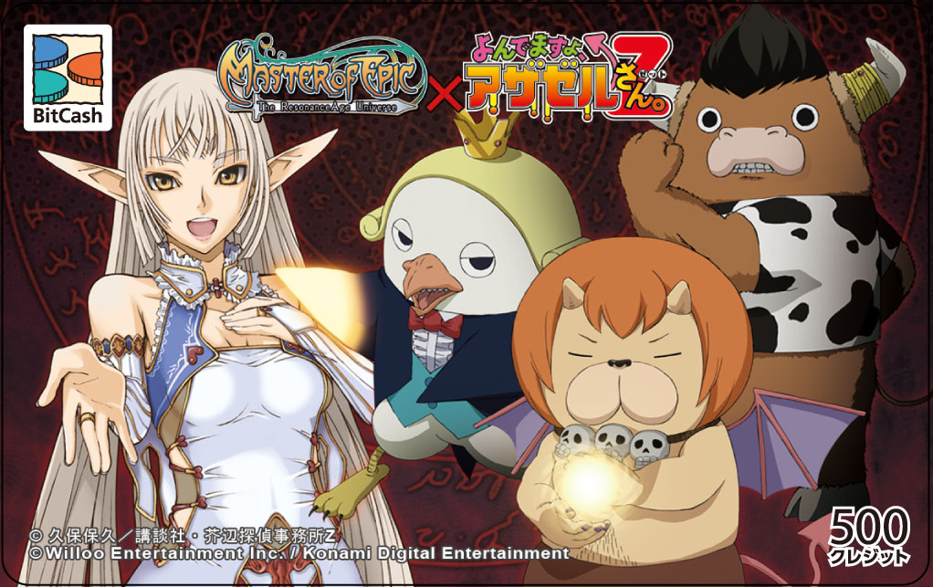 キャンペーン期間中、「Master of Epic」にて、「ビットキャッシュ」を使用して3,000円分以上のポイントをご購入され、なおかつ「アザゼルさん。特別ガチャ」を1回以上プレイされたお客様の中から抽選で50名様に「「Master of Epic」×「よんでますよ、アザゼルさん。Z」オリジナルビットキャッシュカード500円分」をプレゼントいたします。