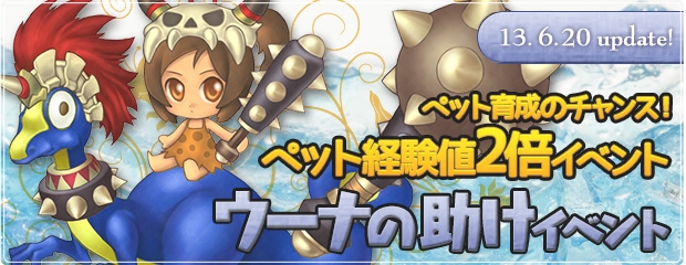 キューエンタテインメントは、「エンジェルラブオンライン」において、「ペット経験値2倍イベント」と「ウーナの助けイベント」を、本日6月20日より開催する。