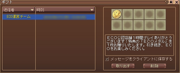 とってもお得なECO公認店舗でのプレイがさらに楽しくなる新システムが登場します!公認店舗でプレイすると、1時間接続ごとにECOメダル1枚がギフトシステムで入手できちゃいます!いっぱいプレイして「ECOメダル」を集めて、リサイクル装置から行くことができる「秘密の場所」で過去のECOくじアイテムと交換しちゃいましょう!