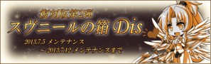 2013年7月5日(金)定期メンテナンス後より、ゲーム内ショップにて「スヴニールの箱 Dis」を販売いたします。復刻版ボックス第2弾「スヴニールの箱 Dis」は、過去に販売されたボックスに登場したストライカーたちを厳選し、または普段ではなかなか手に入らないアタックタイプのストライカーに進化できるデバイスも投入!いずれも大変豪華なラインナップとなっております。惜しくも入手機会を逃してしまったあの子をGETできるビッグチャンスですので、どうぞお見逃しなく。