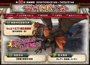 カプコンは、「モンスターハンター フロンティアG」において、ゲーム内イベント「第66回公式狩猟大会」を7月18日より実施する。