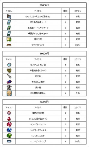 7月18日(木)のメンテナンス終了後から9月5日(木)のメンテナンス開始前までの間、一度に5000円以上の課金決済をされた方に素敵なプレゼントを致します。
