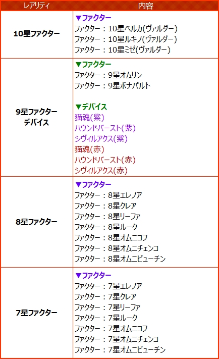 「スヴニールの箱Pr」から入手できるストライカー、アイテム一覧