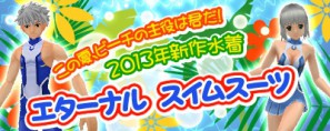2013年7月16日(火)定期メンテナンス後より、新作アイテム「エターナル スイムスーツ」が手に入るお得なキャンペーンを開始いたしました。
