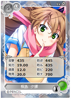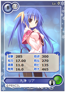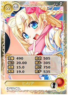 今回登場する限定カードは、2013年9月27日発売予定のPENCIL最新作「ひめごとユニオン」のヒロイン「ヒメリア(SS)」、「桐島 夕輝(S)」と、同ブランド「太陽のプロミア」から「エレガノ(A)」、「ティンクル☆くるせいだーす」から「九浄 リア(B)」の4枚となります。