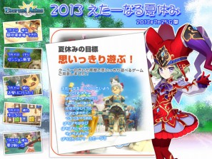 2013年7月25日(木)メンテナンスにて、「2013えたーなる夏休み」を公開いたします。「2013えたーなる夏休み」では、期間限定のイベントから、一風変わったダンジョン、すごろくを実装します。また、競技場装備が30種以上追加など、夏にぴったりのアップデートになりました。