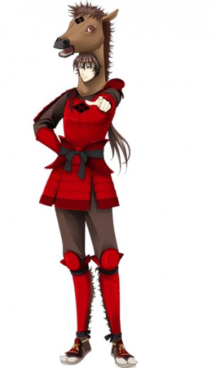 武田四天王の一人。風林火山のうち、火を司る武田軍の重臣。熱い心と高い状況判断能力を持つ有能な武将。なぜか頭に馬の被り物を被っている。本人は、武田騎馬軍の精神を具現化した兜として普及活動に勤しんでいるが、他の武将には受け入れられない。
