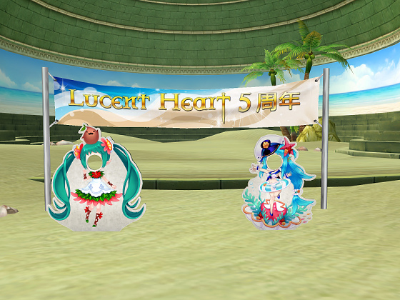 1.「中央都市トリーア」の「風の劇場」周辺に砂浜が出現しました。さらに5周年に先駆けて、記念撮影用のオブジェクトも登場しました。