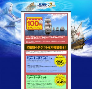 本キャンペーンでは、これから「大航海時代 Online」を始めるお客様に向け、手軽に「大航海時代 Online」の内容をお試しいただけるよう、「スターターチケットLite」と「スターターチケット」の価格を大幅に値下げして販売いたします。