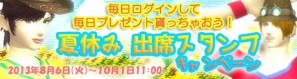 この度RAPPELZでは「夏休み 出席スタンプキャンペーン」として、ゲームに一時間以上ログインすると、毎日素敵なプレゼントがもらえるキャンペーンを実施いたします。