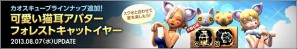 カオスキューブに取引可能な新アバター「フォレストキャットイヤー」が新登場。「スクール水着アバター」と合わせて夏を満喫しましょう。