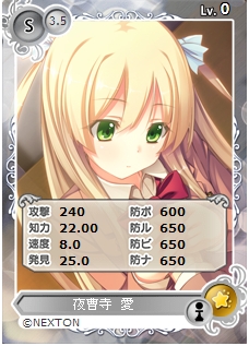 また、「夜曹寺愛(S)」は新スキル「守護の聖光」を保持。スキル発動中、セットした拠点を除く、自拠点の破壊ダメージを軽減させるスキルです。自動発動スキルなので常時発動可能!習得特権は「不動の聖刻」こちらも自動発動の防御スキル。デッキにセット拠点のスキル所持キャラの防御力が常に上昇します!