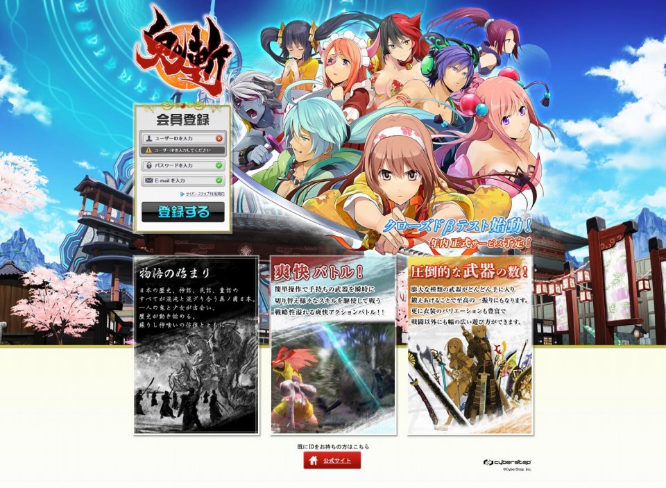 サイバーステップは、「鬼斬」において、クローズドβテストに向けたクライアントダウンロードを、本日8月8日より開始した。