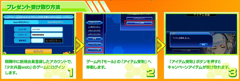 キャンペーン期間中、UJJ会員登録を行い「少女兵器web」をアクティブ化していただいた方にもれなくBランクガールアームズ「ミツビシ トキコ」の契約書をプレゼントいたします。既存UJJ会員の方は、「少女兵器web」のアクティブ化のみで大丈夫です。