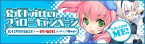 オープンβテスト開始にあたり、公式Twitterも本格始動。これを記念して、公式Twitterフォローキャンペーンを実施いたします。なんと、設定されたフォロー数が達成されるにつれて、プレゼント内容もどんどん豪華に!公式Twitterでは、ゲームの最新情報、開発や運営チームの裏話、GMからのお知らせなど、その時の旬なニュースをすぐさまつぶやきます。Twitterでしか手に入らない情報もあるかもしれません!?皆様からたくさんのフォローをお待ちしております。